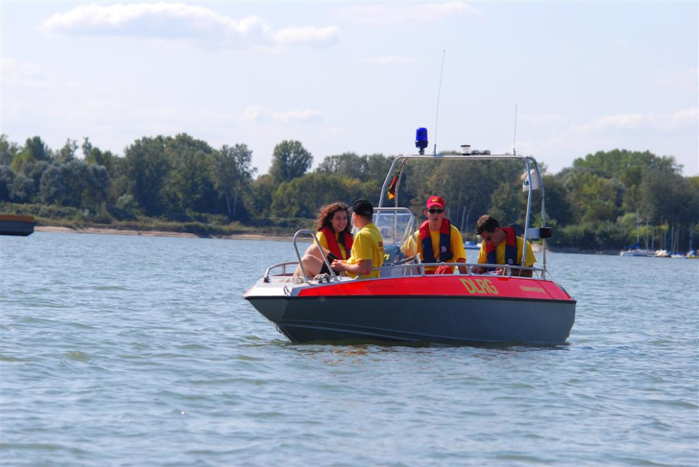 Deshalb trifft man unsere Bootsgruppe, bestehend aus Boot und Zugfahrzeug mit mindestens drei speziell ausgebildeten DLRGlern, im Laufe eines Jahres häufiger auf dem Rheinarm um die Überwachung der Regatten durchzuführen und um schnellstmöglich eingreifen zu können, sollte es einmal zu einer für Menschen gefährlichen Situation kommen.